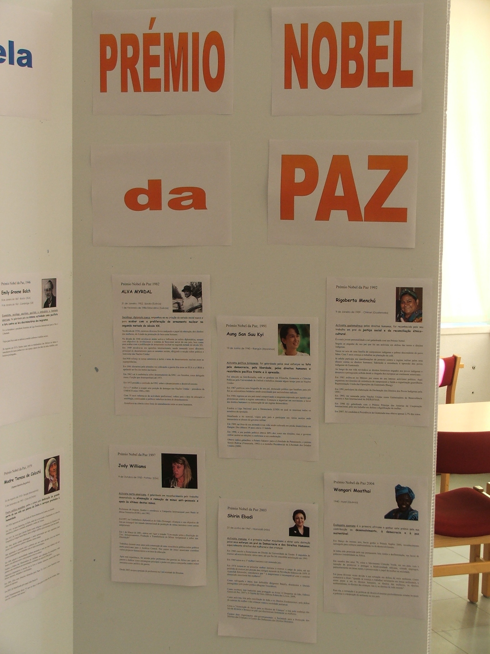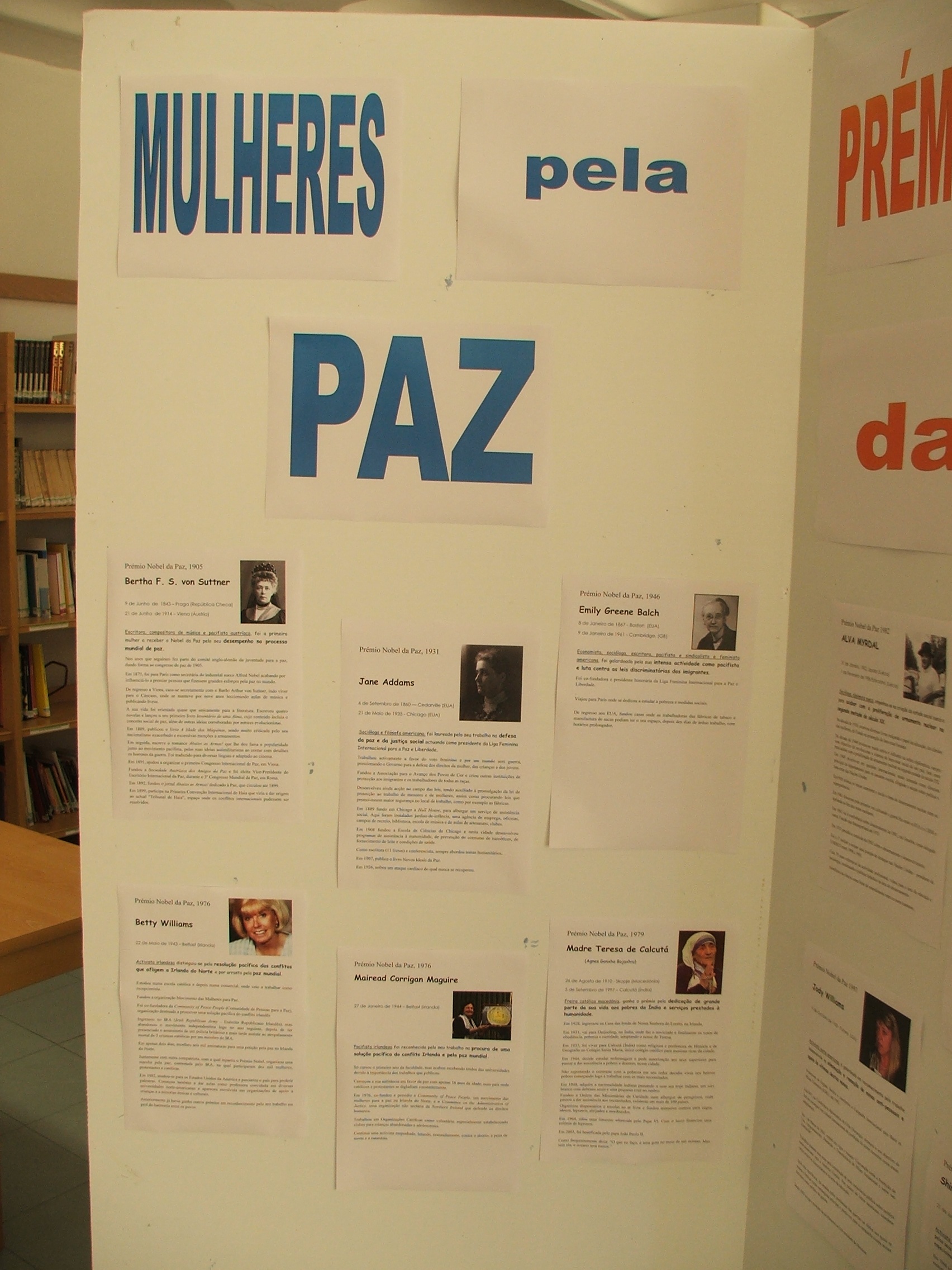 A biblioteca elaborou uma exposição, destacando as mulheres que receberam o prémio Nobel.