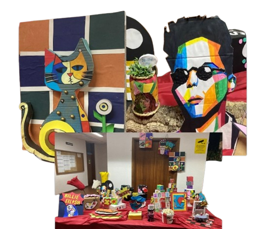 Durante o 1º Período o tema “ POP ART”, foi explorado nas suas diferentes formas, materiais e cores dando asas à imaginação e criatividade destes jovens em processo de construção da sua personalidade.