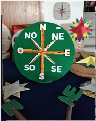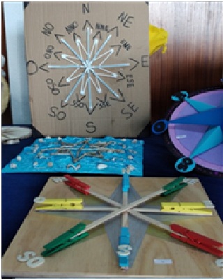 Utilizando os mais diferentes materiais e técnicas, os alunos exteriorizaram a sua imaginação e criatividade na construção de um instrumento de localização relativa que, de modo consciente, ou não, todos nós utilizamos diariamente para posicionarmos algo em relação a um elemento de referência, ou seja, para nos orientarmos no espaço. No caso geográfico, os diferentes rumos da rosa-dos-ventos são obtidos através do movimento aparente do Sol acima da linha do horizonte. O nome, resulta da distribuição dos diferentes rumos semelhante às pétalas da flor e, por outro lado, da direção do vento.
