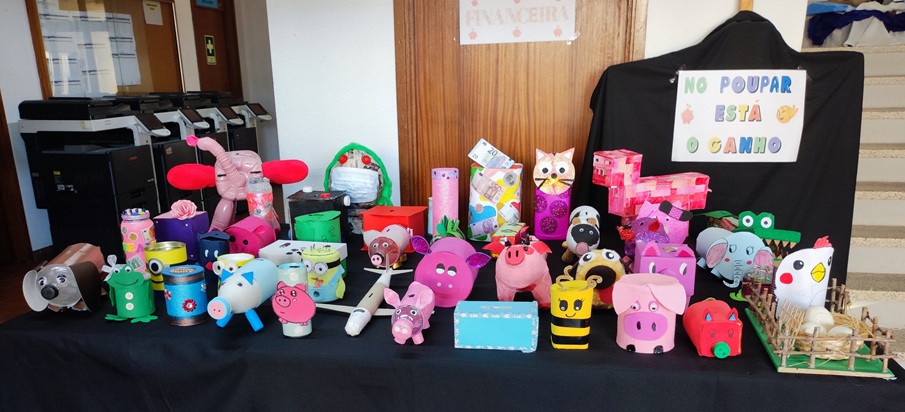 Como desafio final, os alunos construíram mealheiros reutilizando materiais, combinando criatividade e consciência ambiental. O entusiasmo e a dedicação demonstrados foram notáveis.