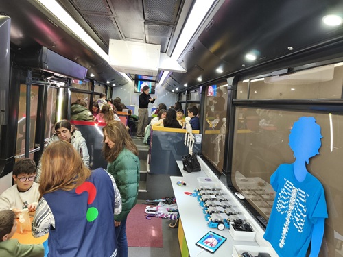 Durante os dias 20, 21 e 24 de março, o autocarro da CIM VDL (Comunidade Intermunicipal Viseu Dão Lafões), convertido em laboratório móvel, esteve estacionado na escola SEDE para promover a literacia científica, a literacia literária e a sensibilização para as alterações climáticas através da realização de várias atividades educativas assentes em propostas criativas.
