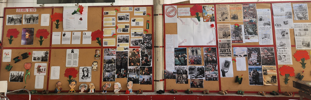 “Por ocasião do 51.º aniversário do 25 de Abril, a nossa escola organizou uma exposição comemorativa que esteve patente no átrio principal, assinalando este marco histórico com um conjunto de materiais que ajudaram a recordar e a refletir sobre a importância da Revolução dos Cravos.