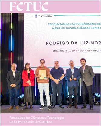 No dia 15 de maio de 2025, o aluno Rodrigo da Luz Moreira, que cumpriu os 12 anos de escolaridade obrigatória no nosso Agrupamento, foi homenageado pela Universidade de Coimbra na cerimónia de entrega do Prémio UC à Frente, Edição 2024, por ter “escolhido esta instituição em primeira opção no Concurso Nacional de Acesso ao Ensino Superior, com nota de candidatura igual ou superior a 18 valores”. Ao mesmo tempo, a Nossa Escola também foi distinguida pelo facto de ter sido “parceira no percurso formativo do estudante”.