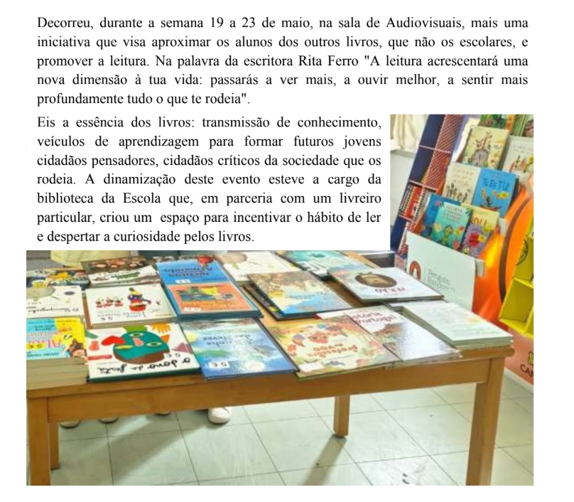 Feira do Livro na sala d Audiovisuais de 19 a 23 de maio