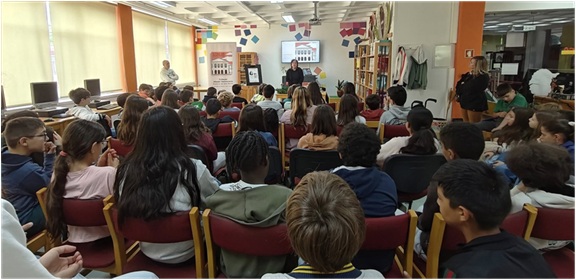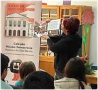 No dia 12 de maio, a escritora e jornalista Carla Maia Almeida esteve presente na biblioteca do nosso Agrupamento para apresentar o seu livro “A Casa da Democracia”. Coube aos alunos do 5° e 6° anos assistirem à sessão de explicação e compreensão do conteúdo da obra: o Palácio de São Bento e o que se passa lá dentro. Os textos são complementados por imagens da autoria do ilustrador Tiago Albuquerque.