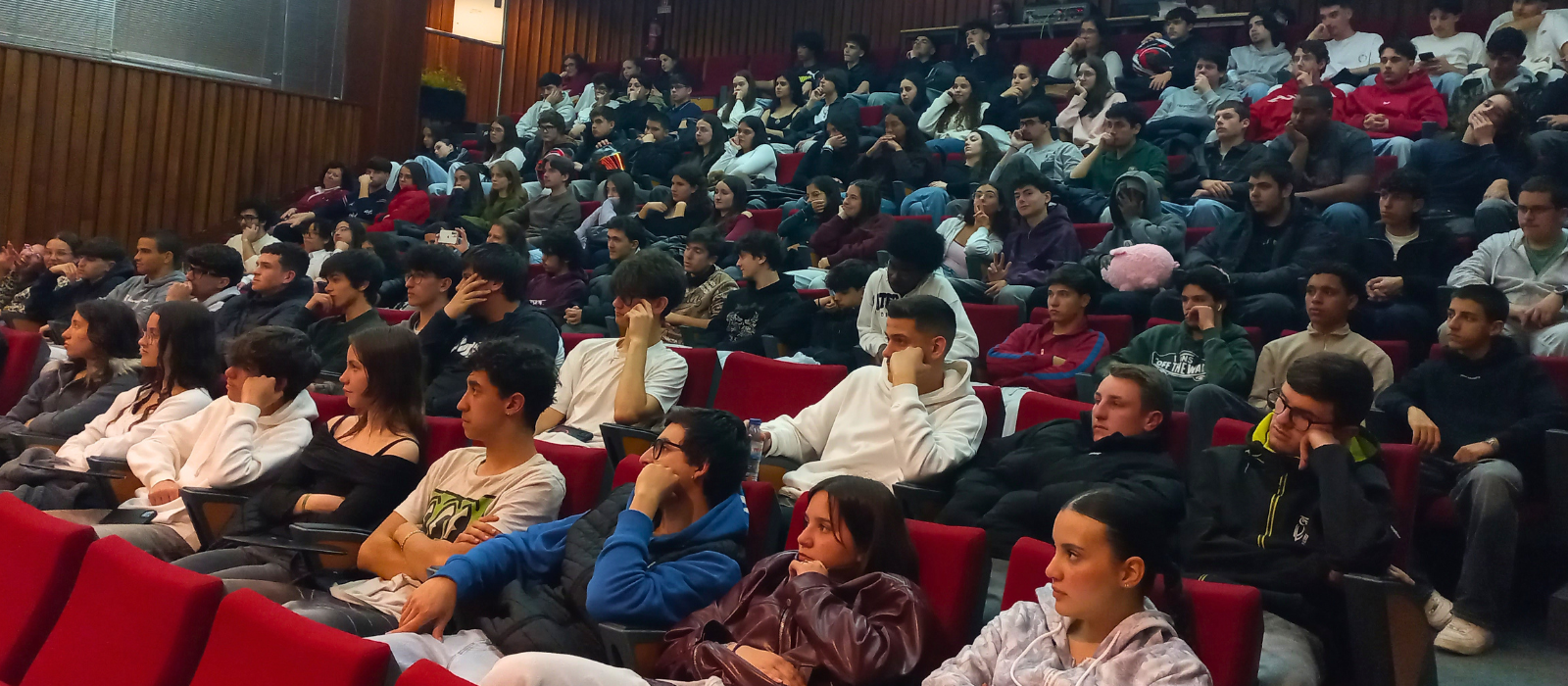 No dia 20 março de 2026, os alunos do 11.º ano do Ensino Regular e Profissional do nosso Agrupamento, deslocaram-se ao Pavilhão Multiusos de Nelas para assistirem à dramatização da peça de teatro “Os Maias: episódios da vida romântica”, apresentada pela Companhia Etcetera, do Porto, cujo trabalho assenta sob o lema “Teatro para TODOS”.