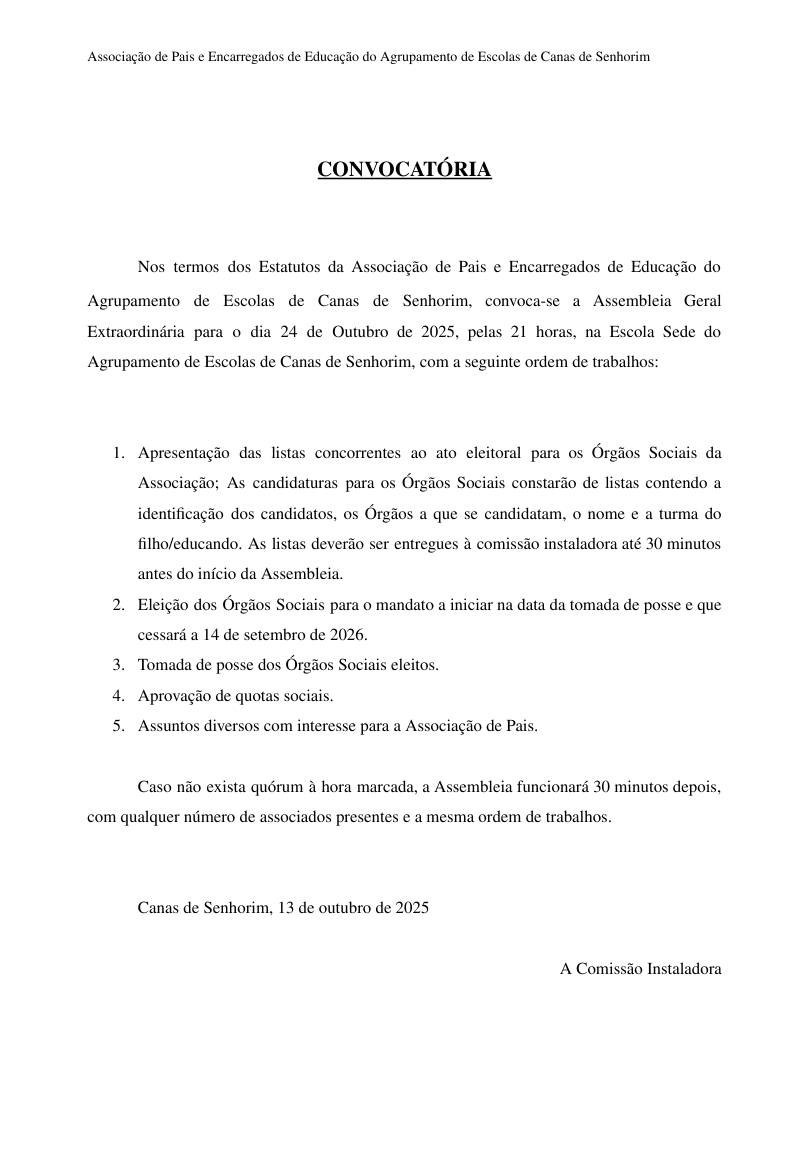 Assembleia Geral Extraordinária (24/10/2025 21:00)